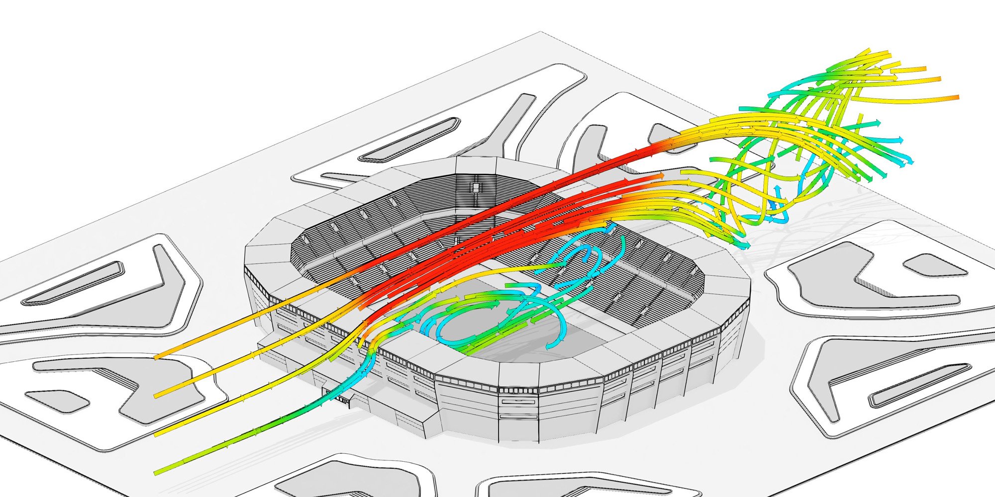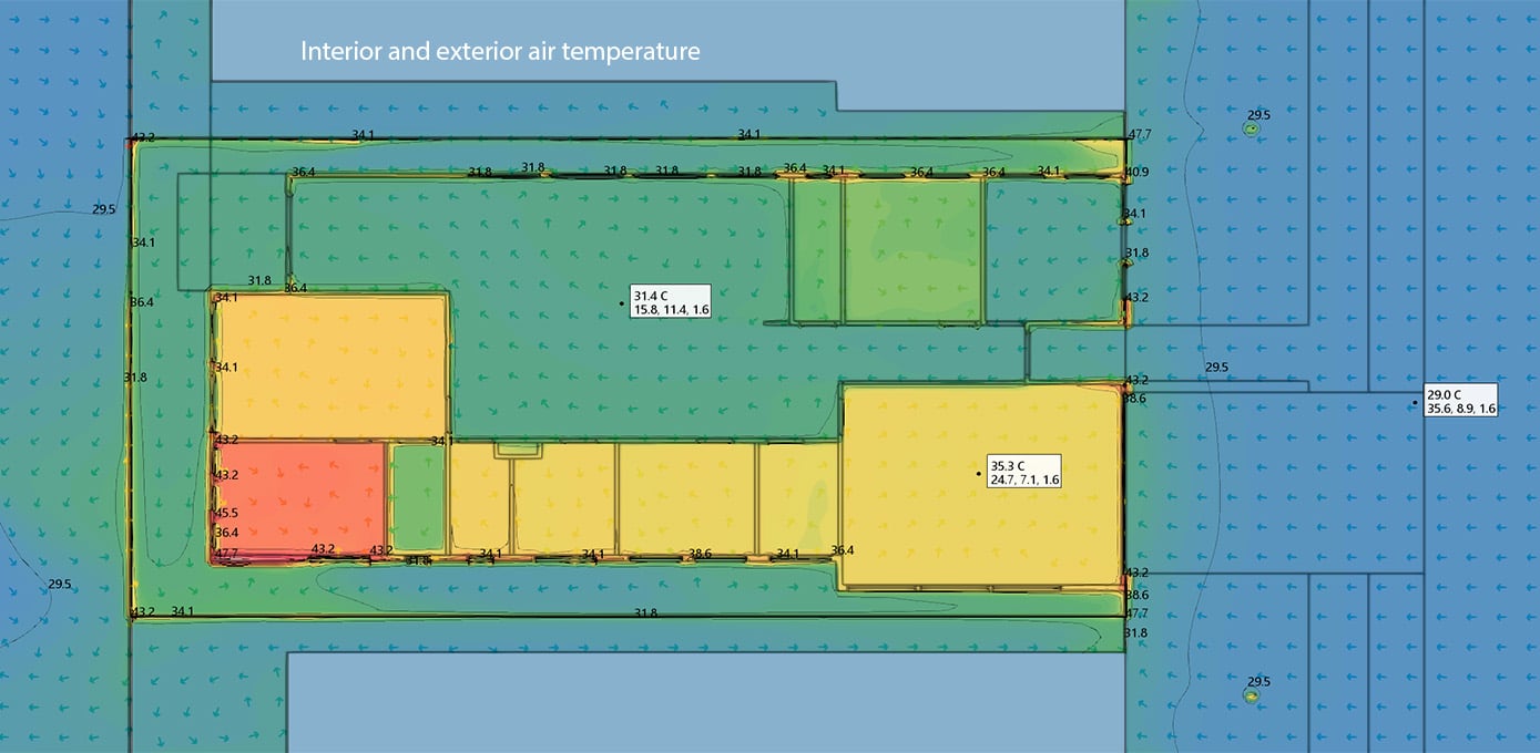 The simulation took approximately 3 hours to complete, and produced a range of results which include detailed internal assessment of energy transfer and the impacts of breezes both within and external to the development.
