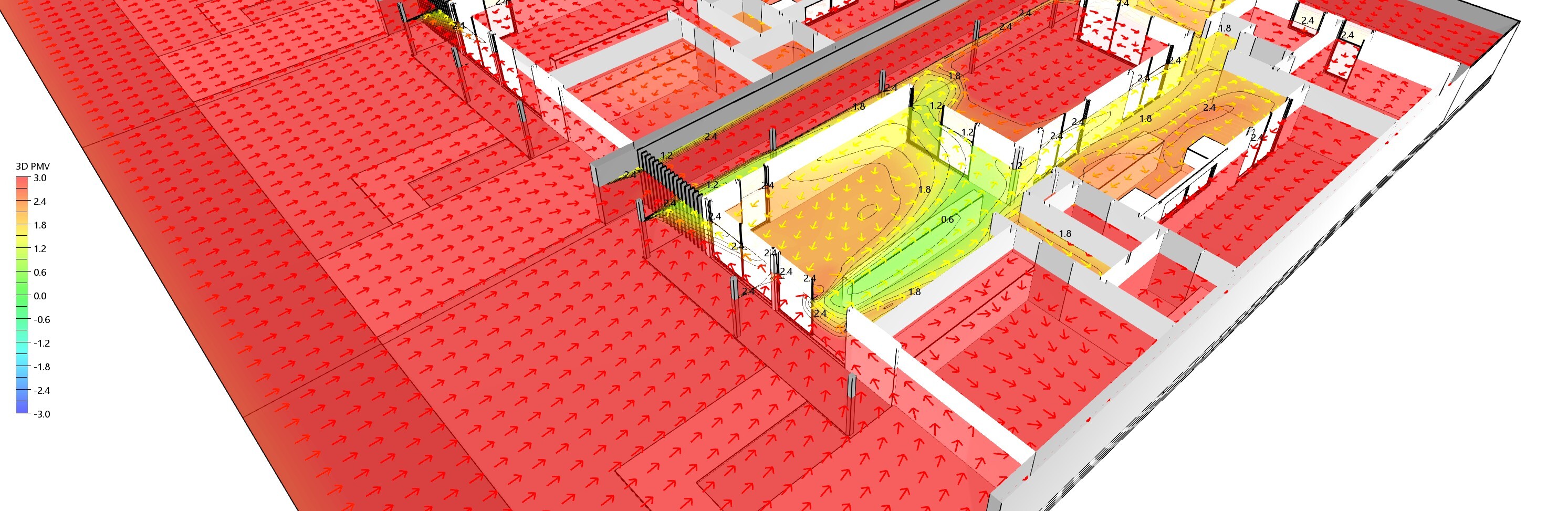 A number of international accreditation standards such as LEED and WELL incorporate comfort requirements from technical standards including ASHRAE 55. Section J of the NCC also relies on these metrics to determine human comfort performance. ASHRAE 55 is used within these systems to evaluate thermal comfort via the Predicted Mean Vote (PMV) model. This model helps assess whether indoor environments meet acceptable comfort levels by analysing air temperature, radiant temperature, humidity, air speed, clothing insulation, and metabolic rate. The PMV score ranges from -3 (too cold) to +3 (too hot) with 0 being the key target for internal spaces.